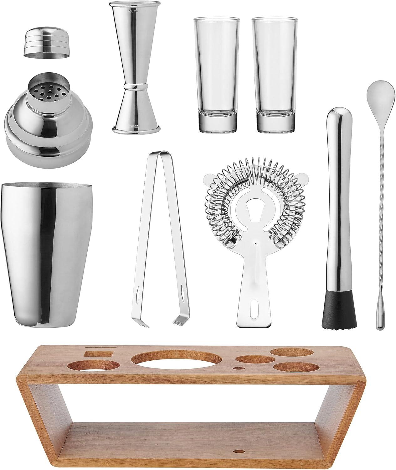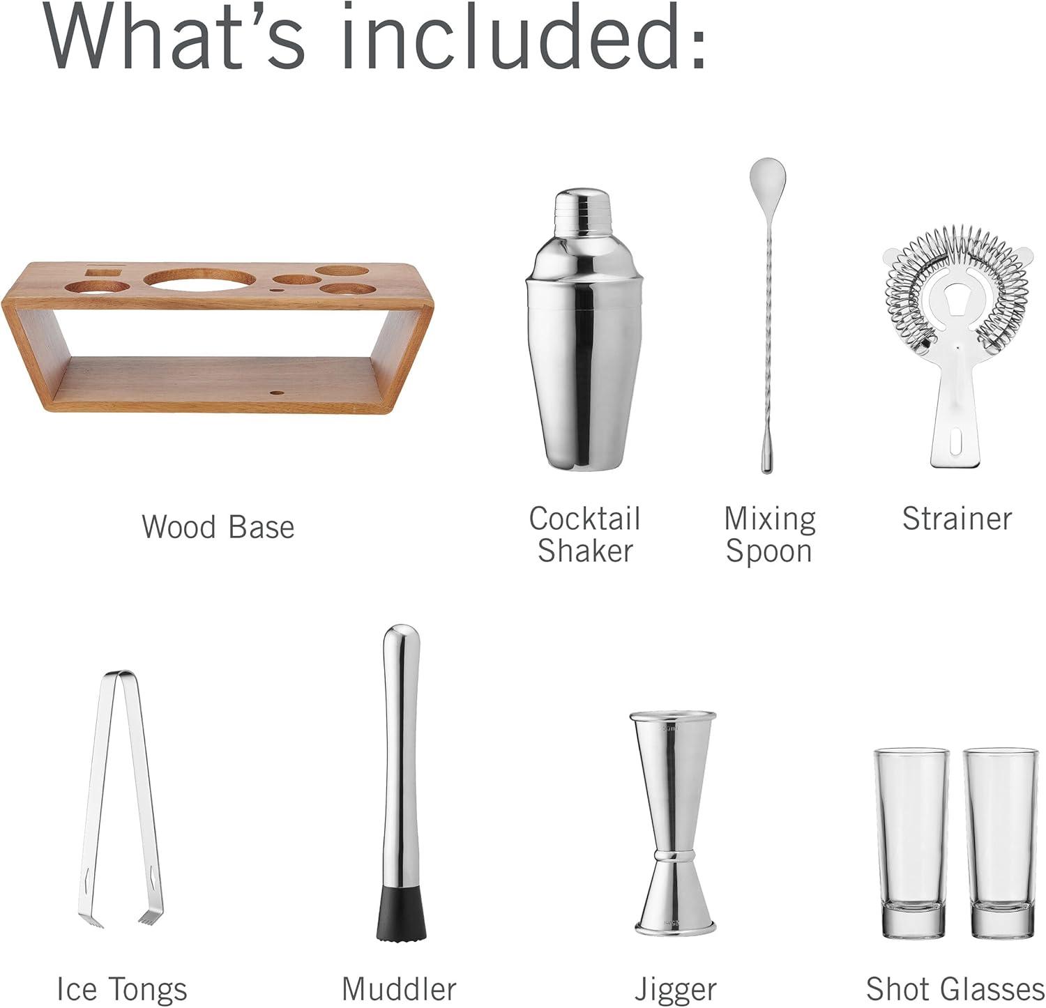 Mikasa Glenwood Mixology 8 Piece Cocktail Shaker Bartender Stainless Steel with Acacia Wood Stand Bartool Set(Mixology Set)