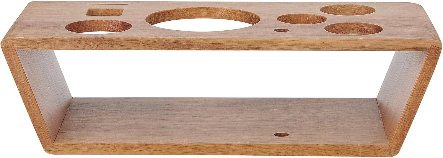 BEAUTIFULLY CRAFTED: the acacia wood base holds the sleek stainless steel tools and shot glasses for a look that is modern and sophisticated