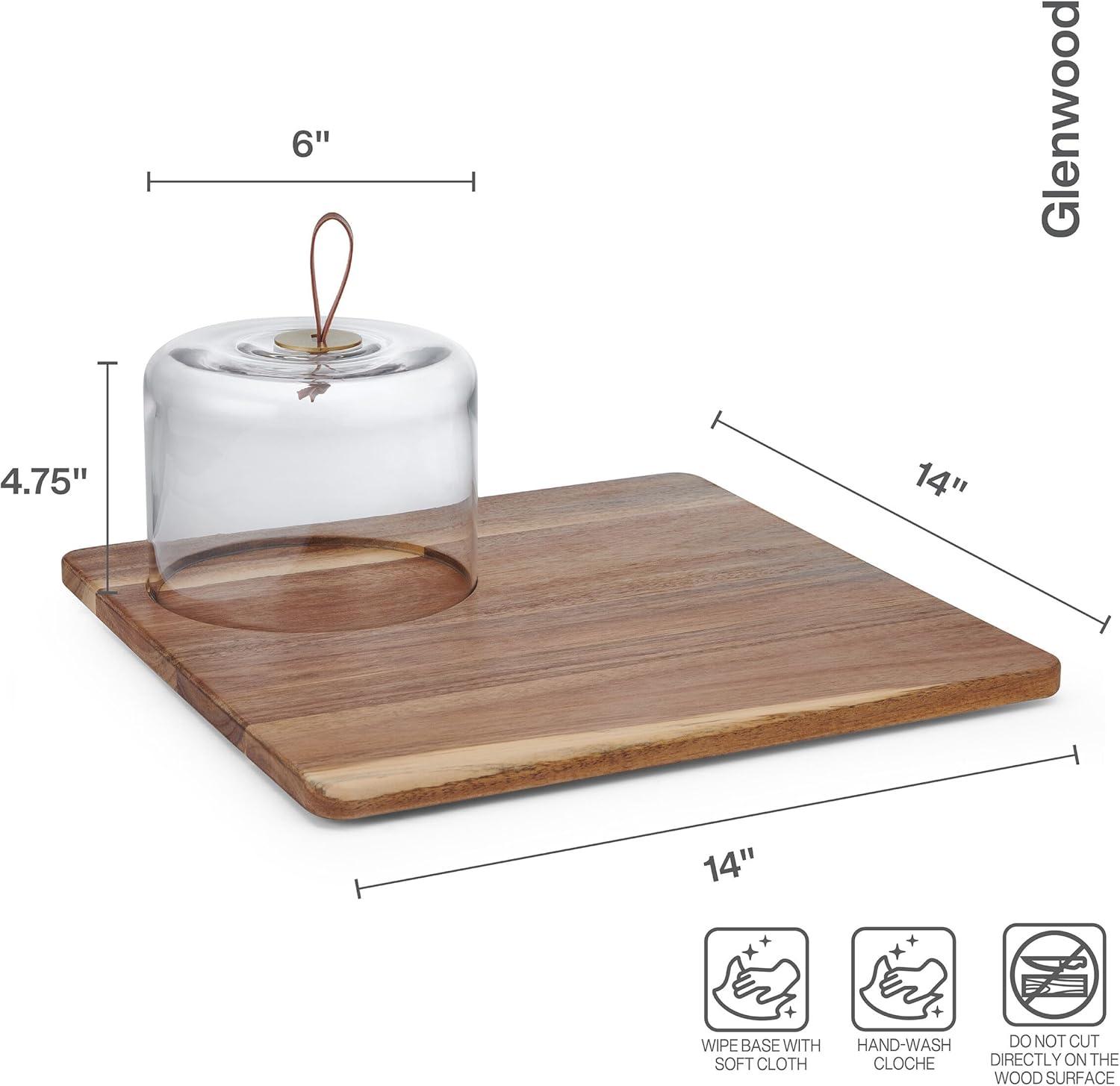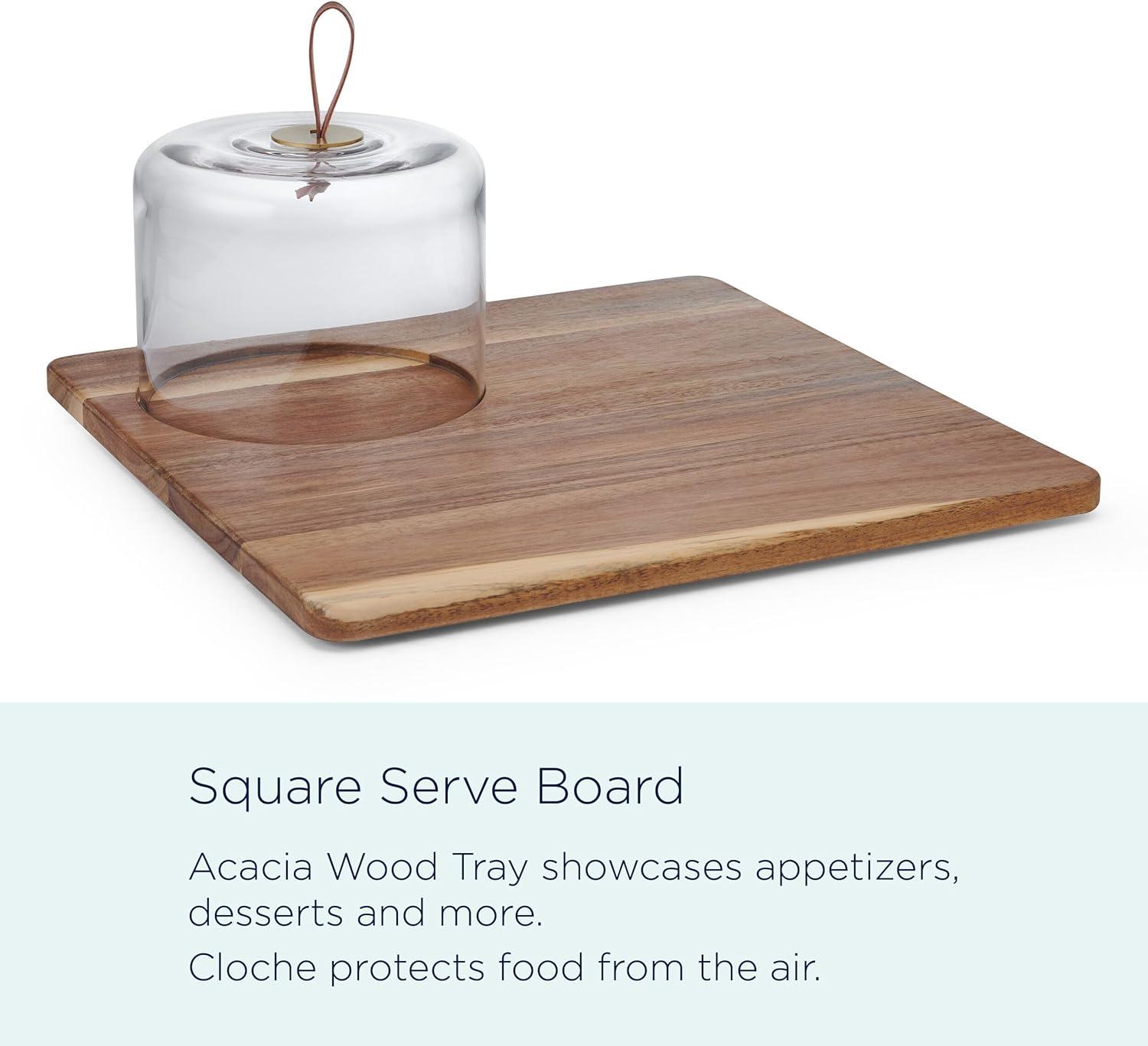 Mikasa Glenwood Mixology 8 Piece Cocktail Shaker Bartender Stainless Steel with Acacia Wood Stand Bartool Set(Square Serve Board)
