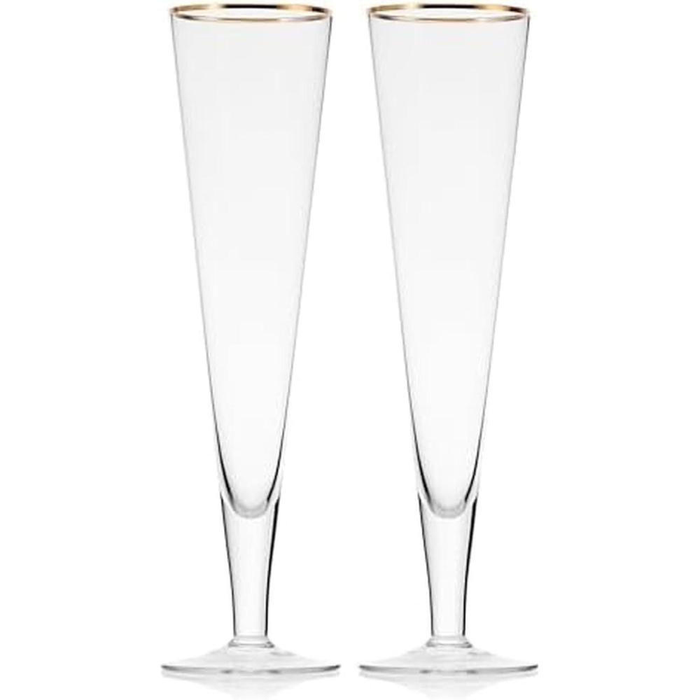 Perfect for couples, this Set of 2 Mr. and Mrs. Gold Flutes by Mikasa is ideal for celebrating romantic occasions and relationship milestones. Beautifully crafted of 100 percent lead-free crystal with a classic silhouette and sized for toasting, this elegant pair is adorned with the words Mr. and Mrs. in gold lettering. Comes packaged in a lovely gift box. Set of 2, each measuring 9-5/8 inches high by 2-3/4 inches in diameter with an 8-fluid-ounce capacity. Hand-wash only.
