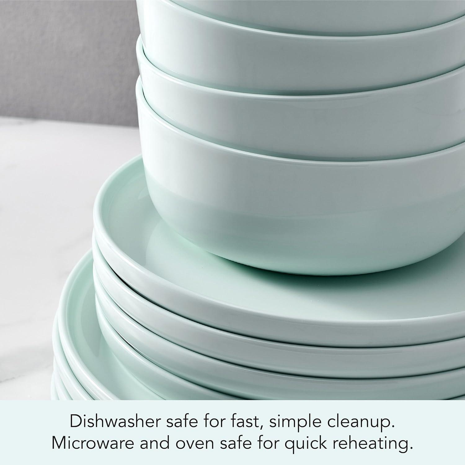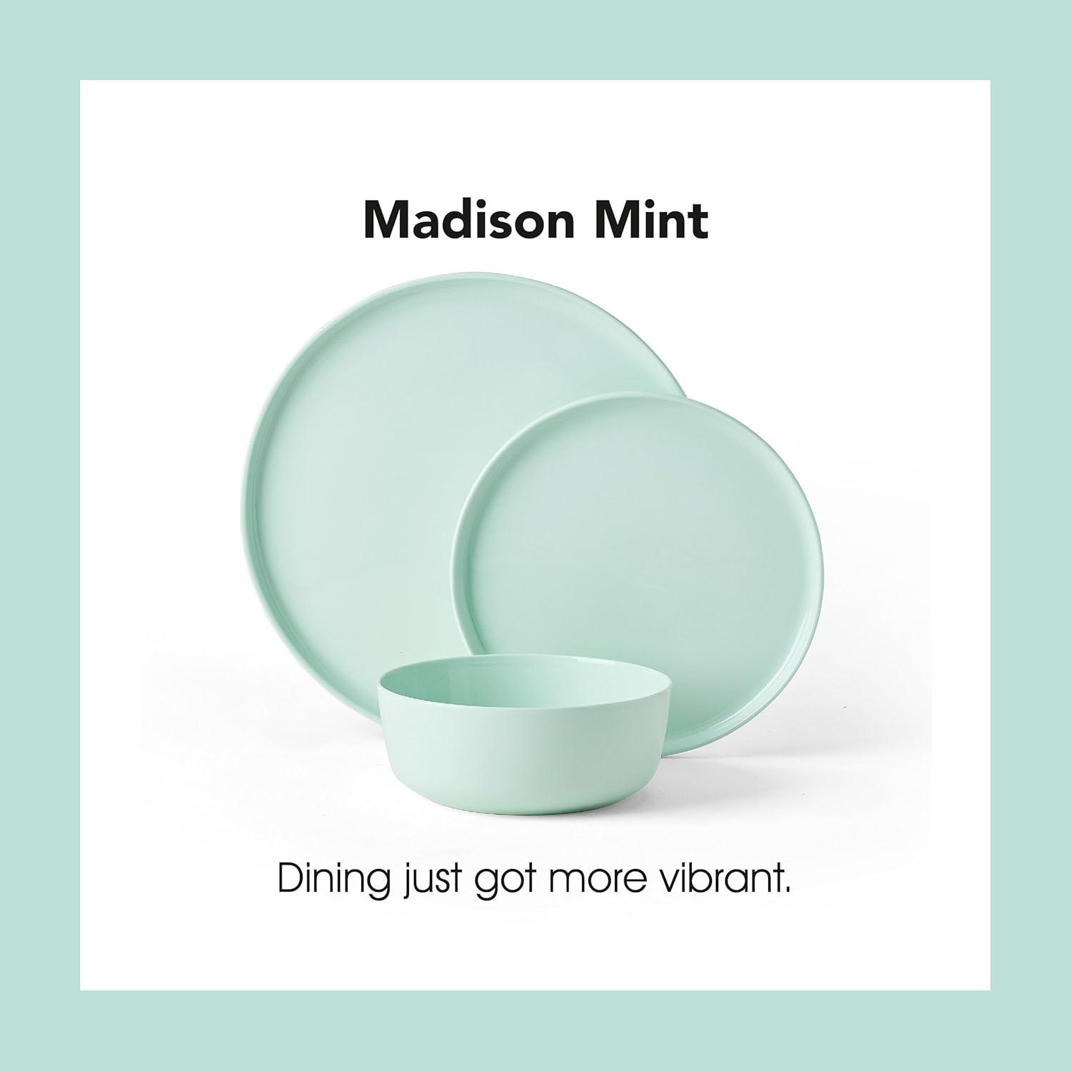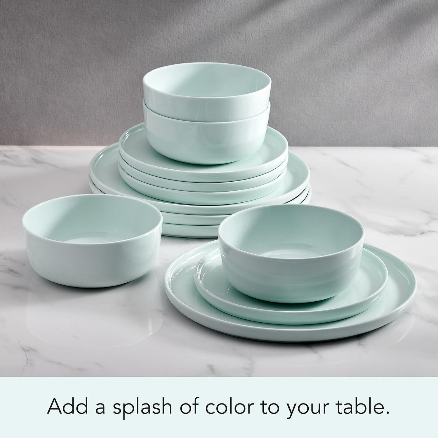 Mikasa Madison Pastel Bone China Lightweight 12 Piece Dinnerware Set, Service for 4, Misty Blue(Mint Green)