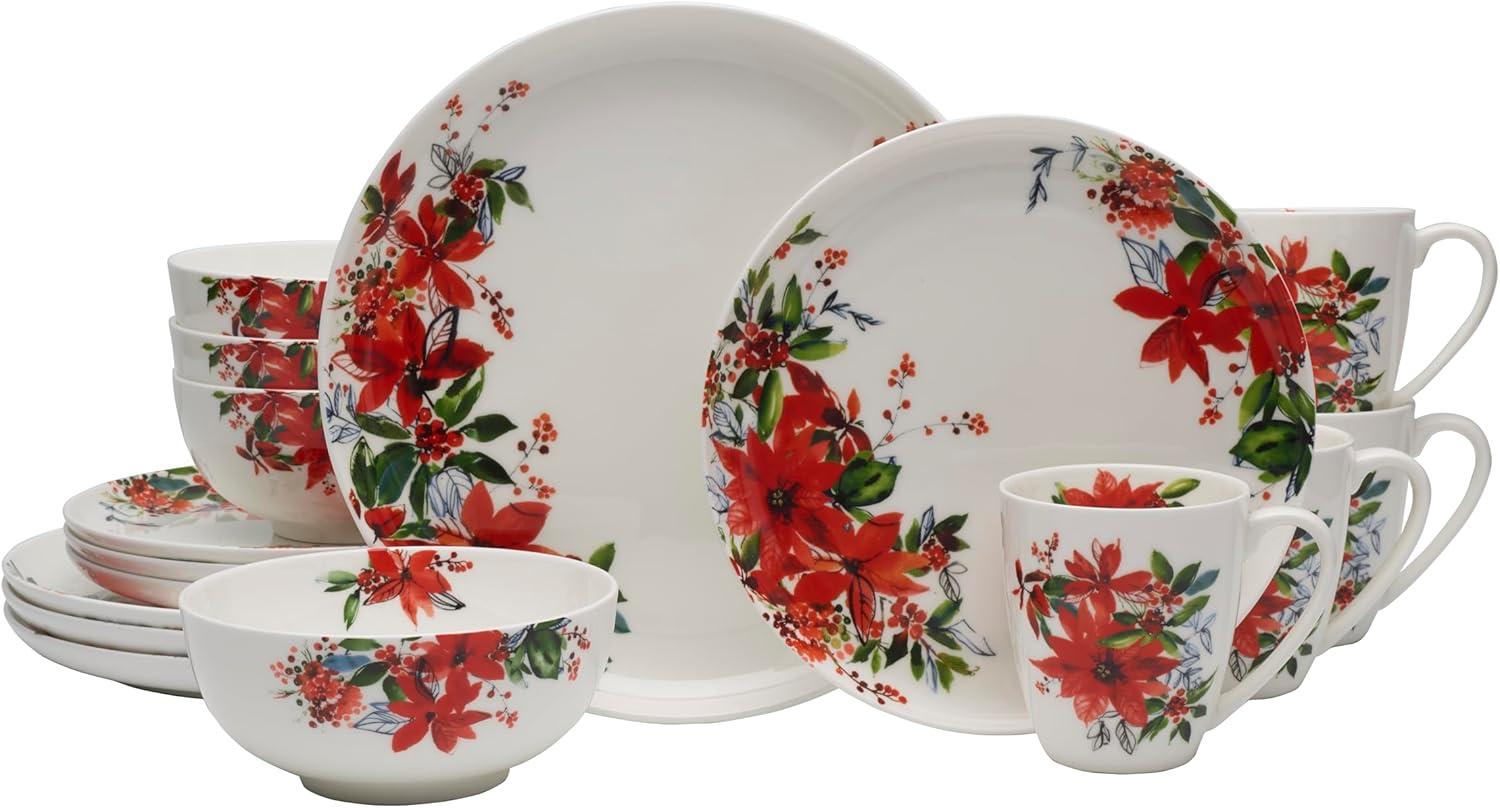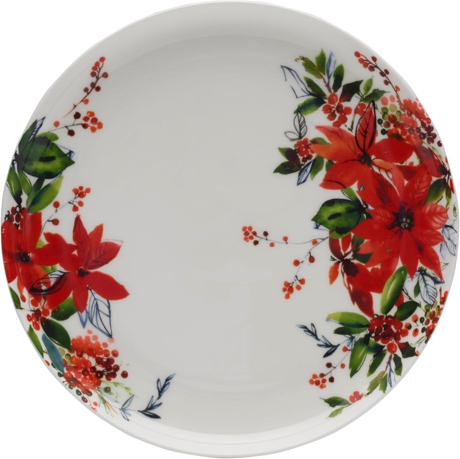 SEASONAL DINNERWARE: this lovely Winter Poinsettia collection is adorned with bursts of red poinsettias perfect for bringing holiday cheer to all your dinner gatherings