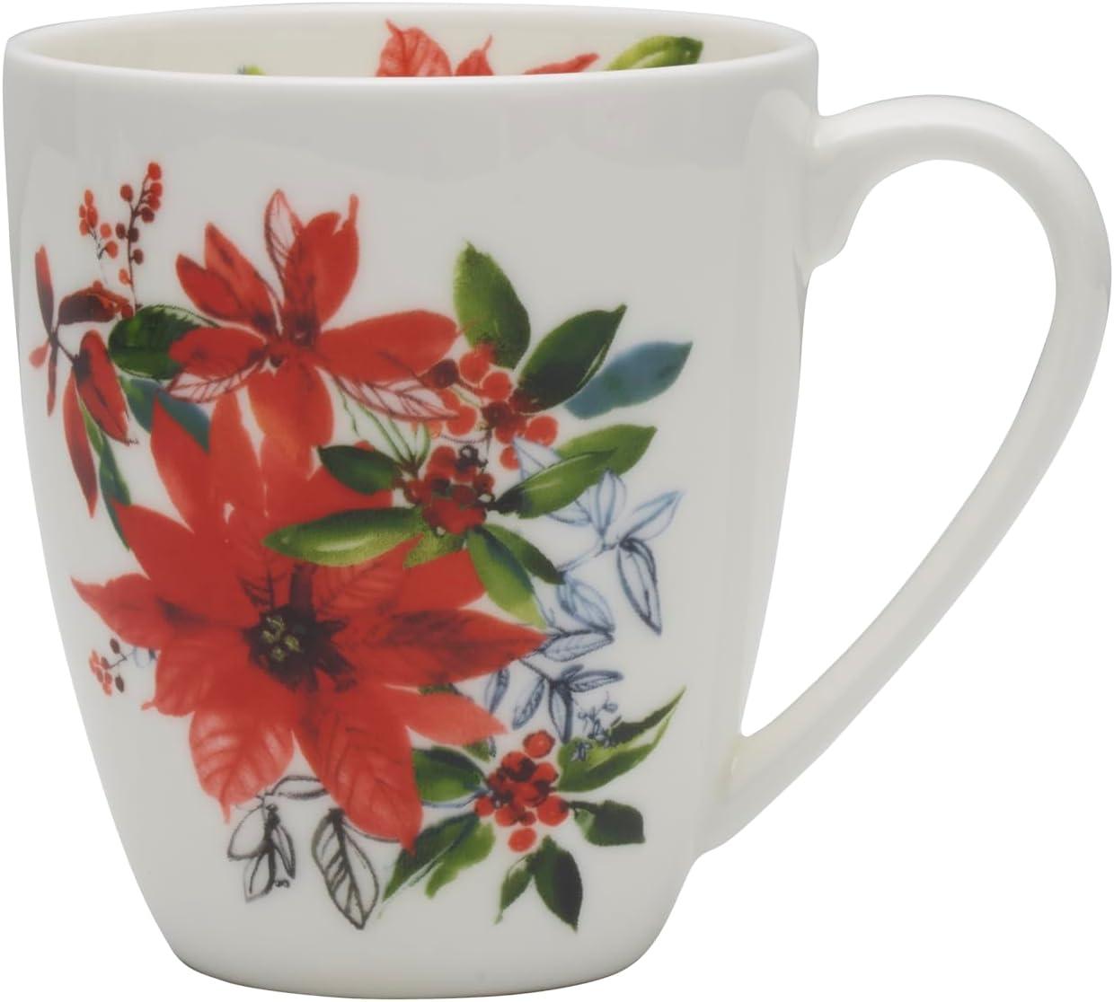 This Winter Poinsettia 16-Piece Dinnerware Set by Mikasa is a vibrant and festive way to set your table to celebrate the season throughout the month of December. Beautifully crafted of translucent, chip-resistant, white bone china, this lovely set is adorned with bursts of red poinsettias on a crisp white backdrop. The pattern even carries through to the interiors of the bowl and mug. 16-piece set, service for 4, include 4 each of: 11-inch dinner plate, 9-inch salad plate, 6-inch cereal bowl with a height of 2-3/4-inches and a 27-fluid ounce capacity, and 12-fluid ounce mug with a height of 4 inches. Microwave and dishwasher safe.